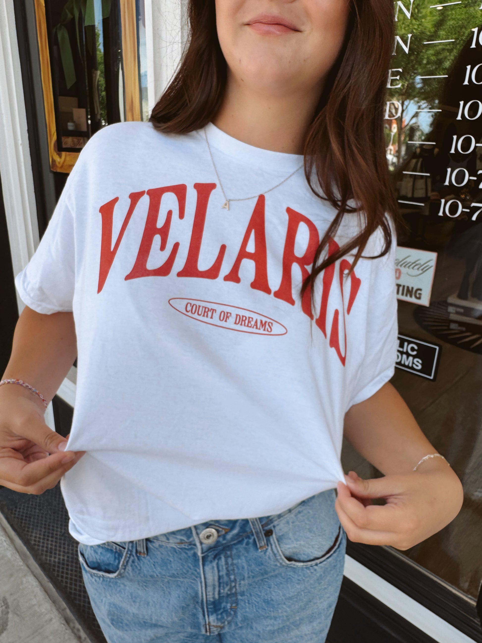 Get ready to represent your love for A Court of Thorns and Roses with the Velaris Graphic Tee. Inspired by the magical Night Court, this tee is perfect for any fan. With a comfy fit and unique design, you'll feel like you've been transported to the City of Starlight.