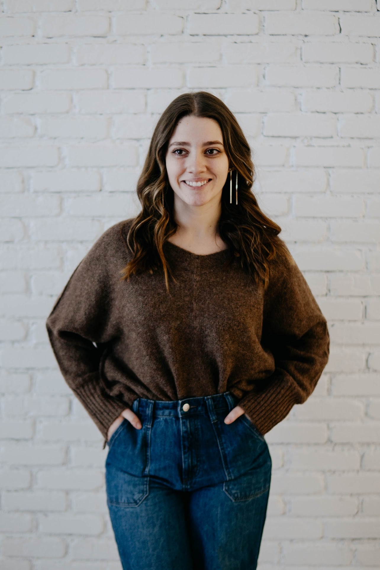 Cozy up in style with the Andrea Sweater. This playful V neck design features a side slit and seam detail, adding a unique touch to your wardrobe. Perfect for a quirky and fun look, this sweater will keep you warm and on trend.