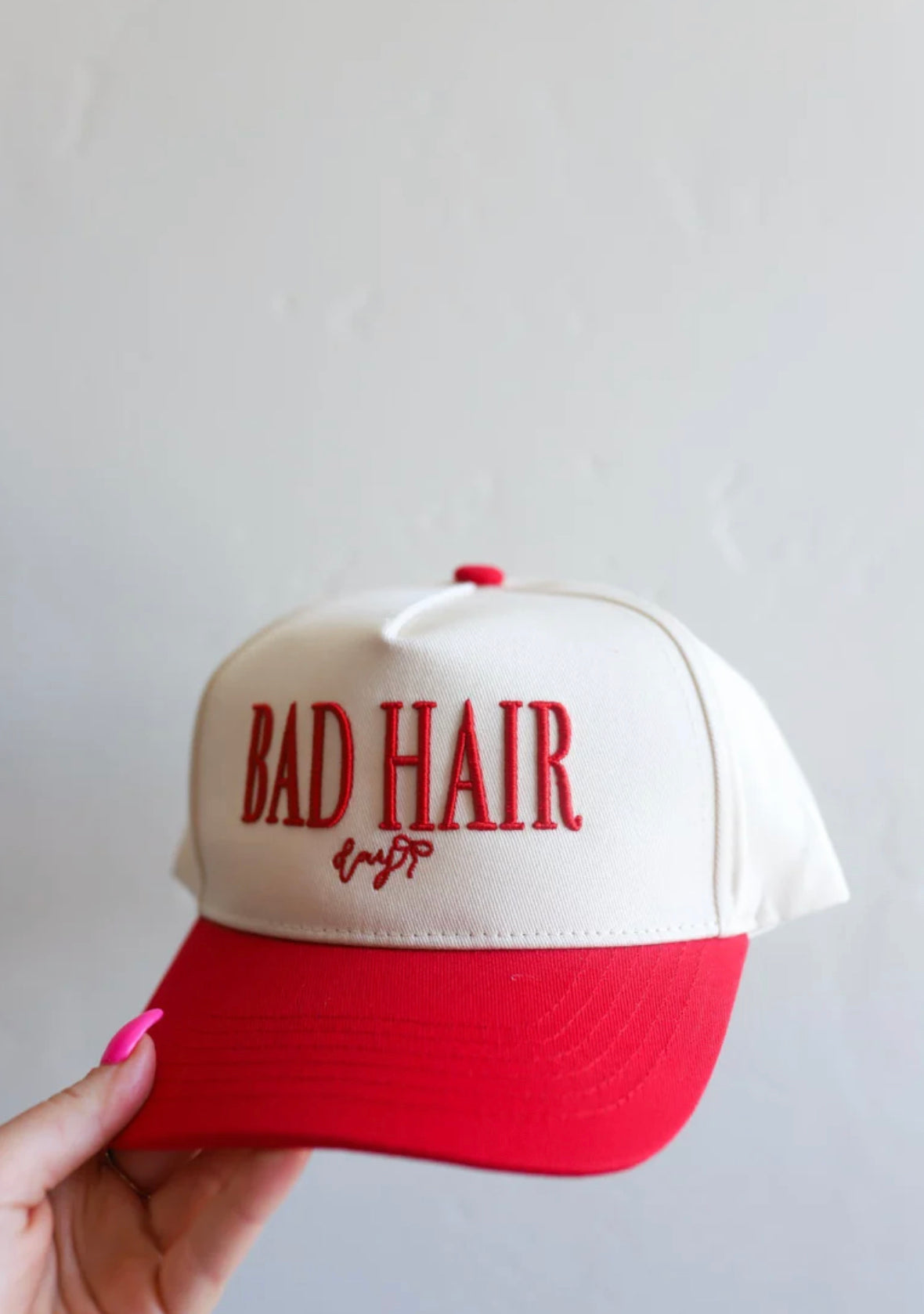 The Bad Hair Day Trucker from KAXI keeps you covered in style. With its bright red color and playful embroidered slogan, this trucker hat adds a fun twist to any outfit. Perfect for those days when your hair just won't cooperate. (Bad hair? No problem!)