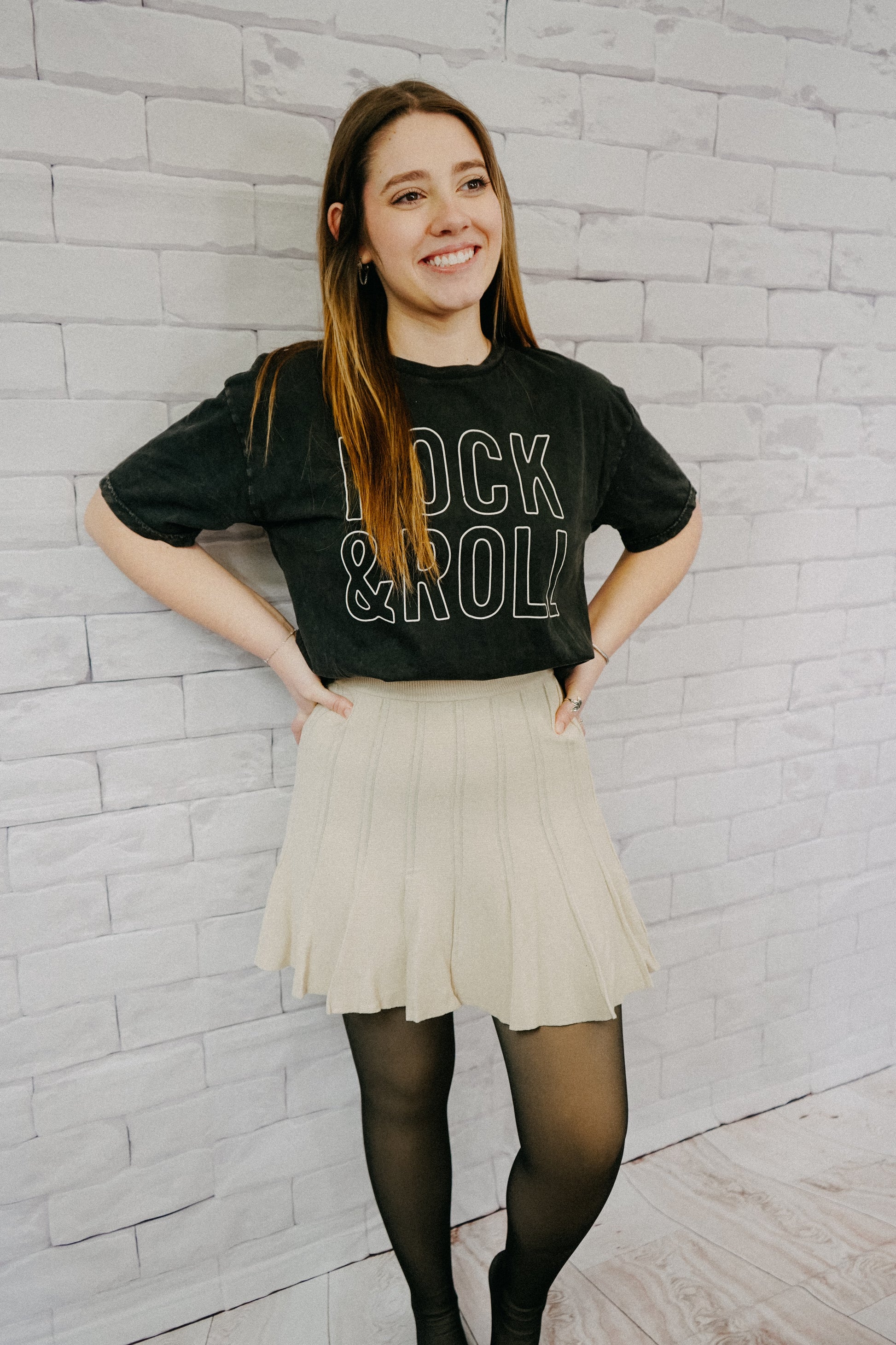 Introducing the Avery Knit Skirt - the perfect addition to your wardrobe! This pleated mini skirt is crafted from a comfortable knit material, providing both style and comfort. A must-have for any fashion-forward individual, this skirt is sure to turn heads and keep you feeling confident all day long.