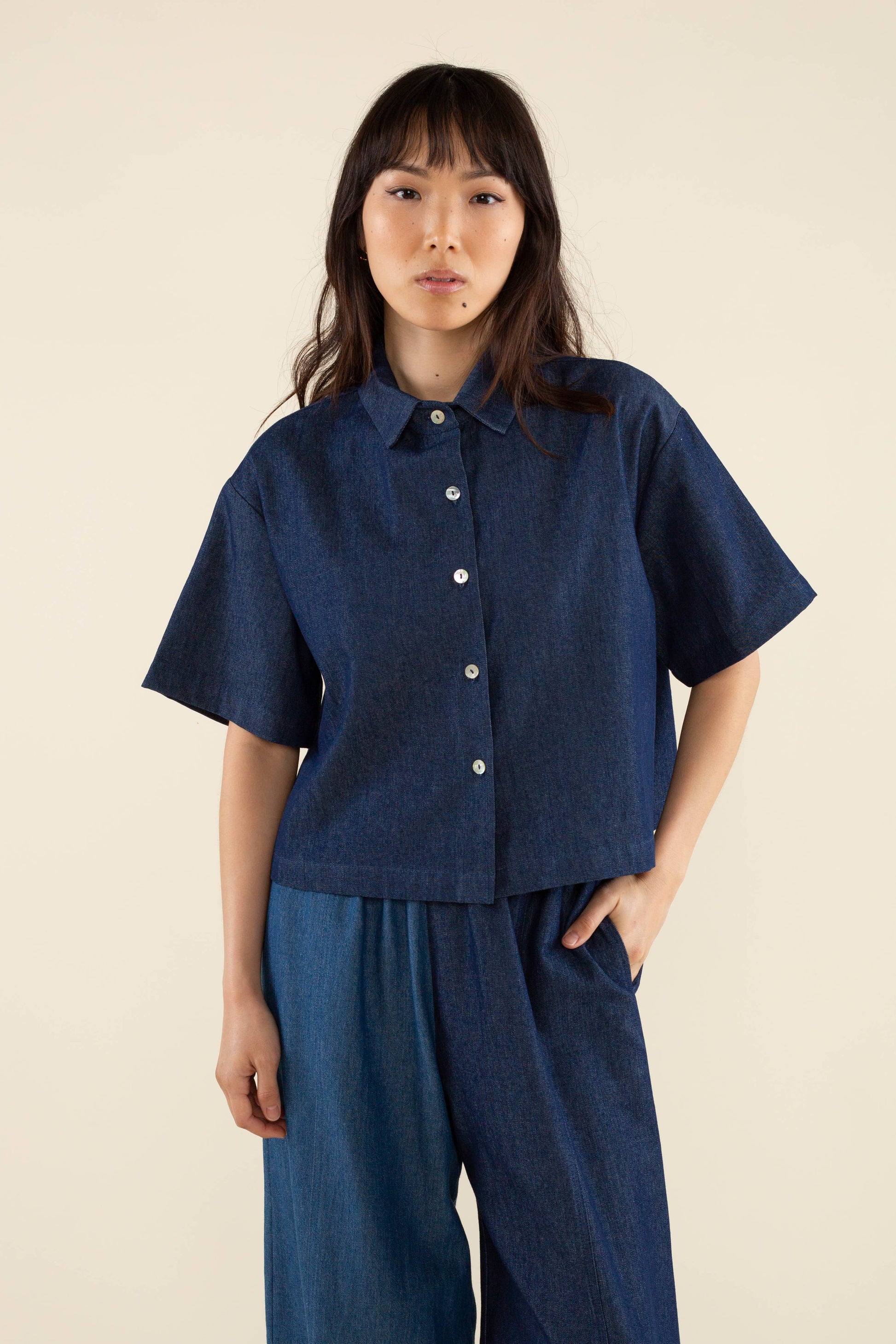 Get ready to rock the denim look with the Charli Boxy Button Up Denim Shirt. Combining a cool boxy fit with classic denim and shell buttons, this short sleeve shirt is the perfect blend of style and comfort. Step up your wardrobe game without compromising on comfort!