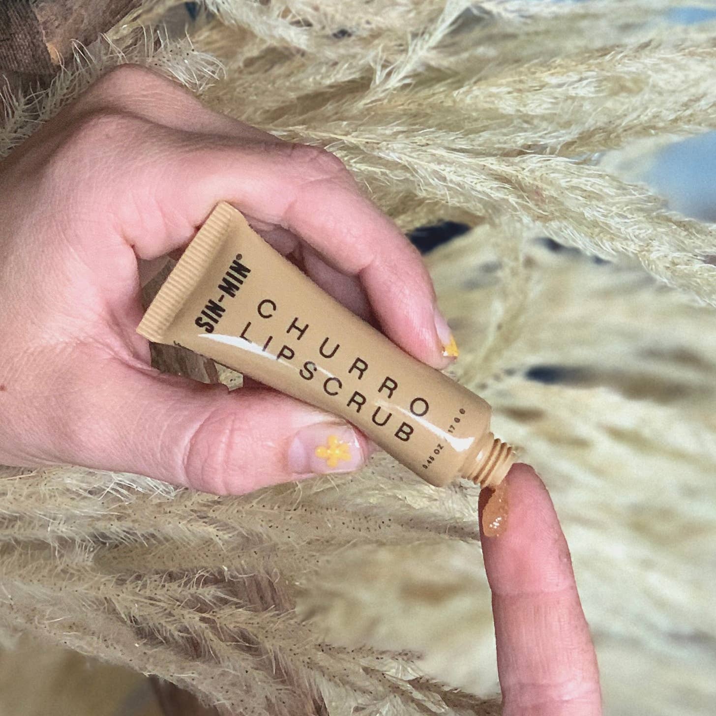 with a churro for your lips! A great stocking stuffer, or bundle well with our Horchata Lip Balm to make a custom gift set. Our vegan plumping lip scrub is based on our favorite sweet treat, using sugar to exfoliate and cinnamon, which promotes blood flow to the lips, to plump – naturally. With a sweet, easily spreadable base of agave, Churro Lip Scrub exfoliates and plumps while nourishing lips with olive-derived squalane and Vitamin E Oil. Newly repacked in an easy to use 0.45 oz squeeze tube making it easy to dispense and spread without making a mess. Once your lips are exfoliated and you begin to feel a little tingle, lick or wash away and apply your favorite SIN-MIN lip balm.