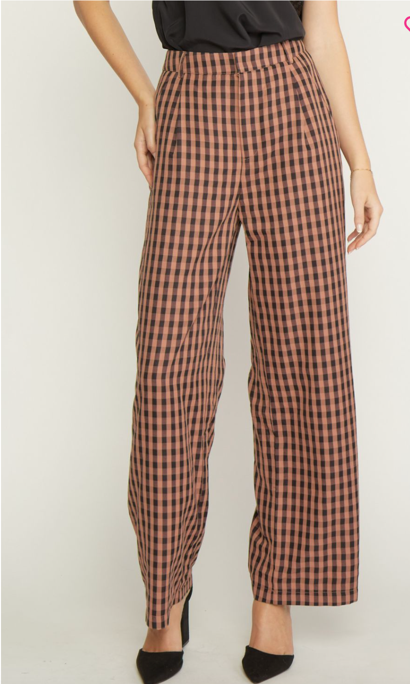 Rock the gingham trend with these high-waisted pants. The wide leg style adds a touch of trend, while the pockets and zipper closure make them practical. Plus, belt loops allow for endless styling options. Perfect for those who love a mix of fashion and function. Pair with our Aubree Gingham Blazer for the perfect pair!