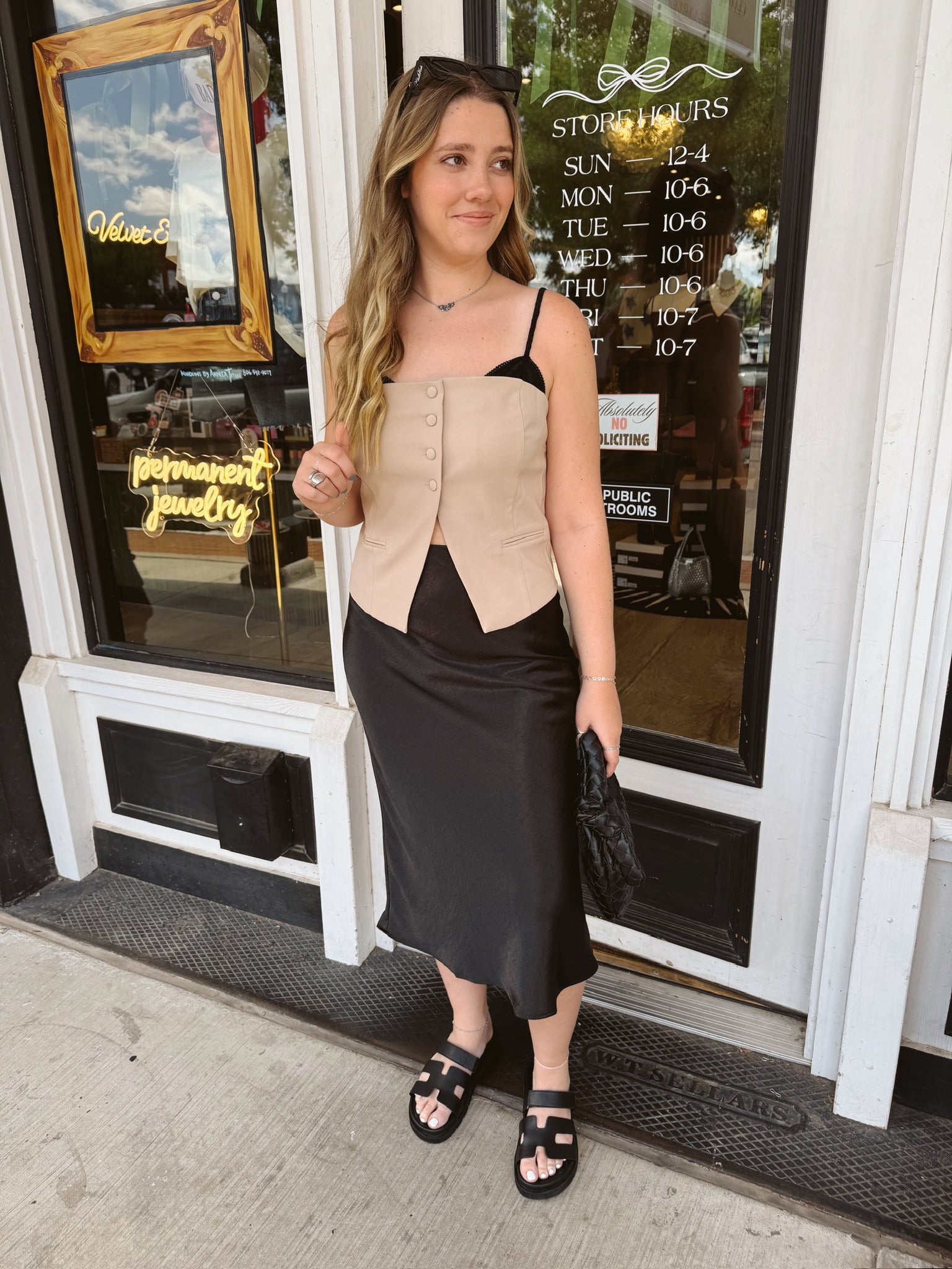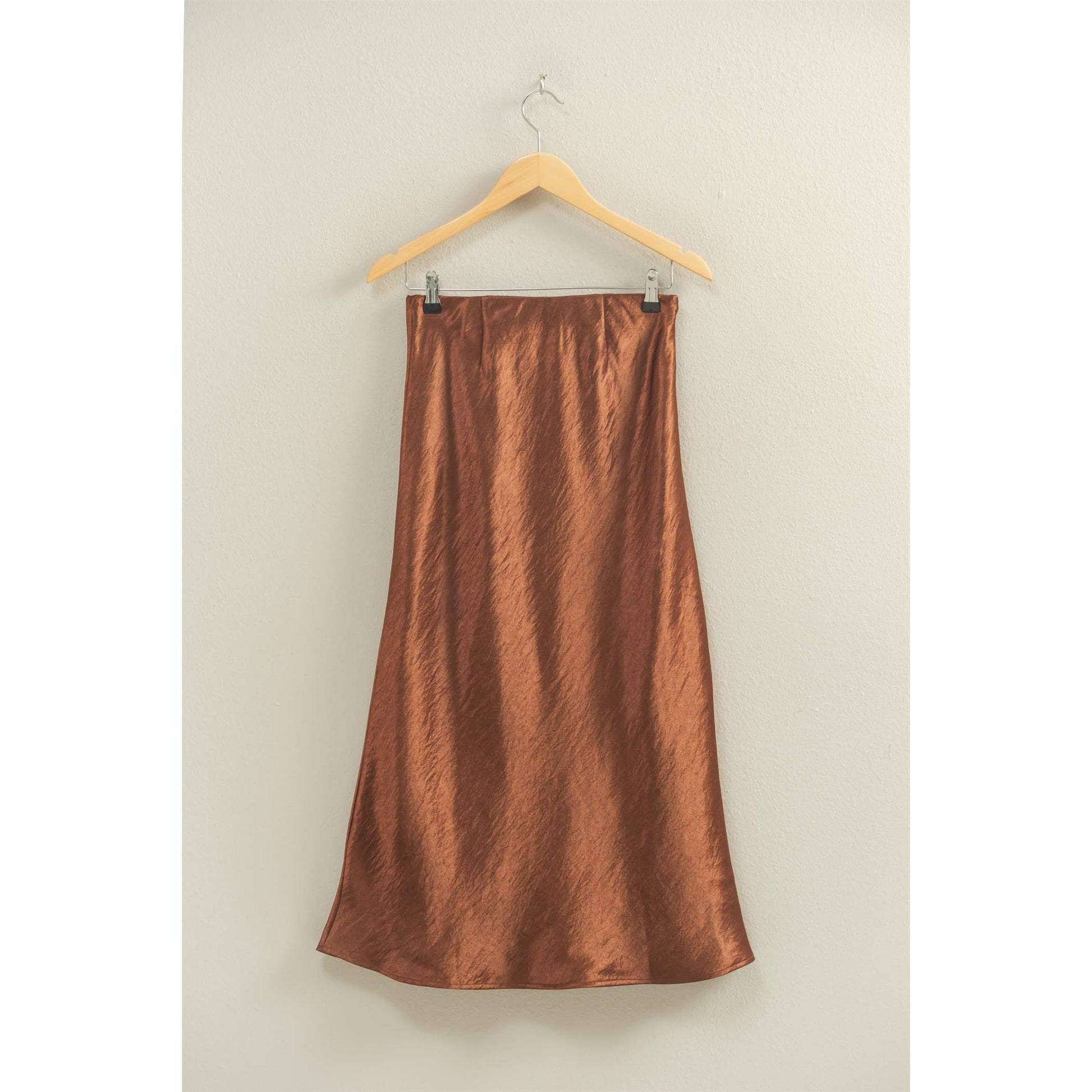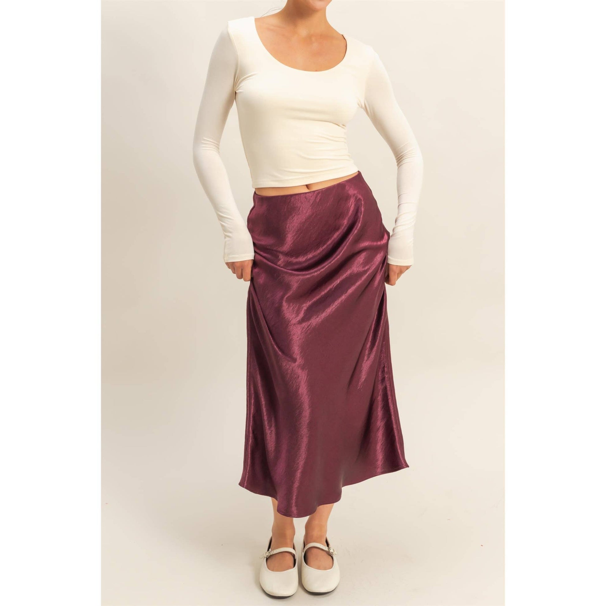 Elevate your wardrobe with the Dana Satin Midi Skirt—a playful and flattering piece that effortlessly blends comfort and style. Its smooth satin finish catches the light beautifully, making it a versatile staple that transitions from casual days to chic evenings with ease. Perfect for twirling through your day in confidence and charm!