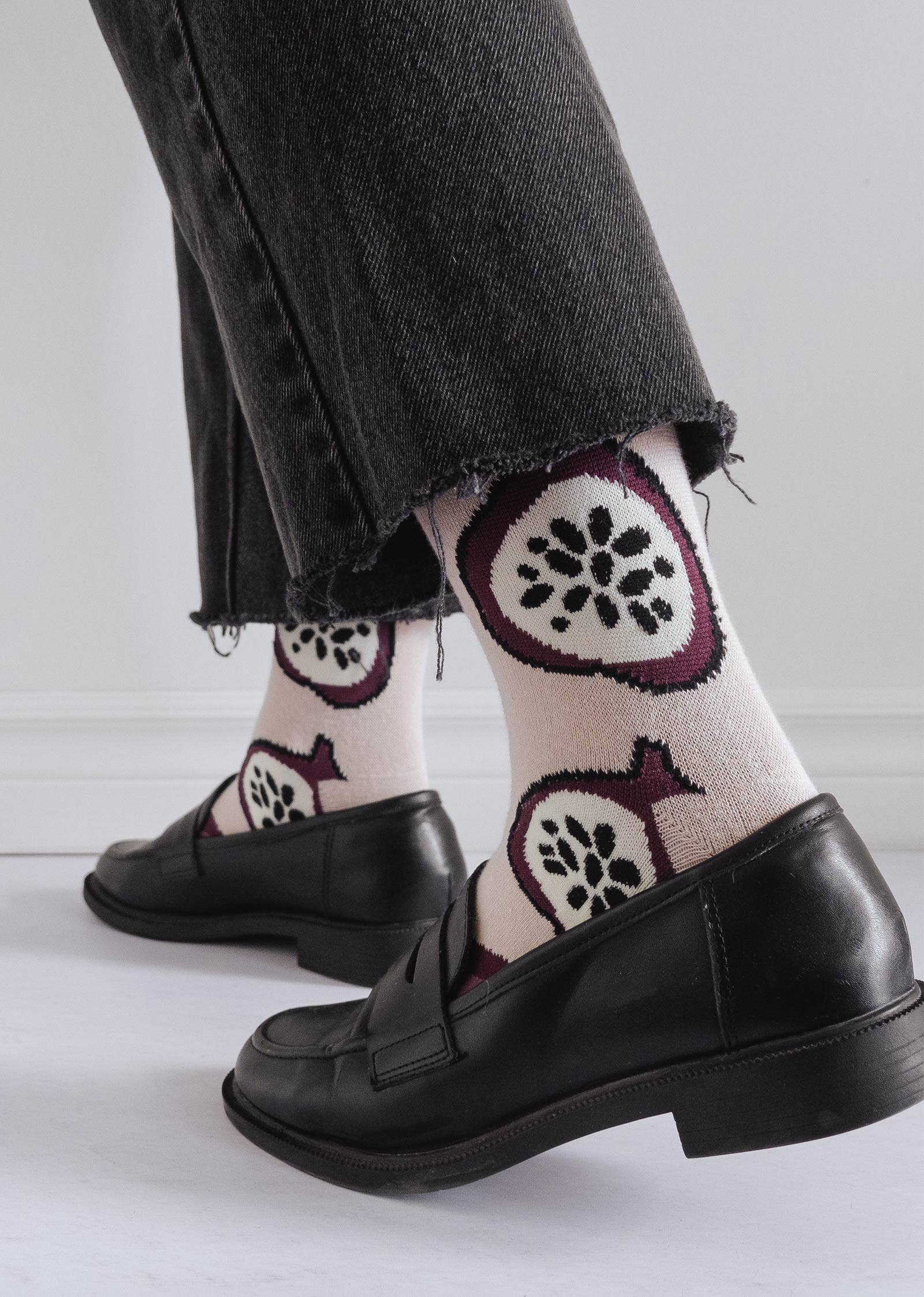 Figs for the whole year. Beautiful and soft this sock with illustrations of figs that will bring the warmth of summer to your feet. Beautiful, durable and comfortable socks designed for an everyday use. It will keep your feet cozy and warm in any situation.Those are perfectly to keep warm and cozy!