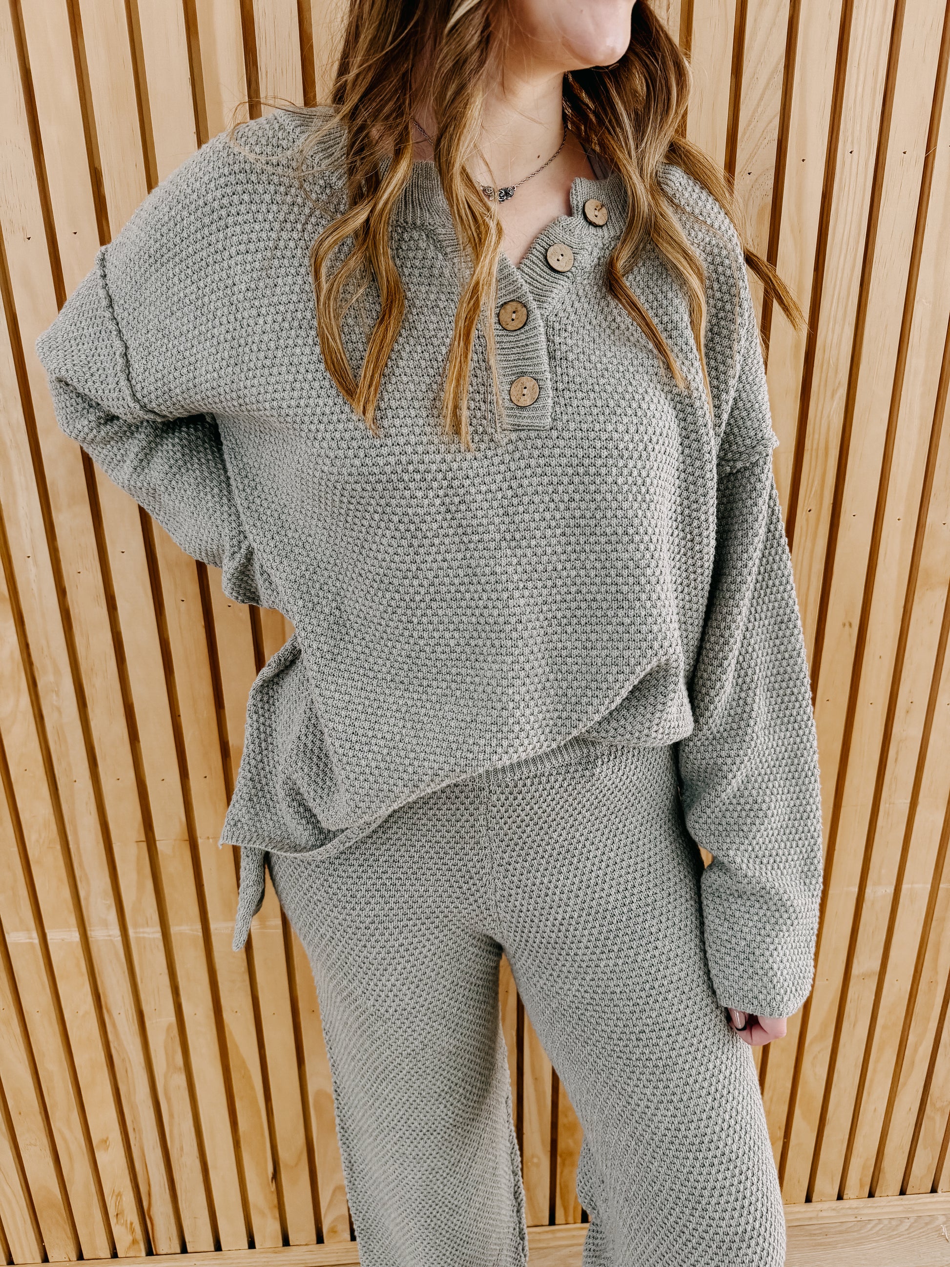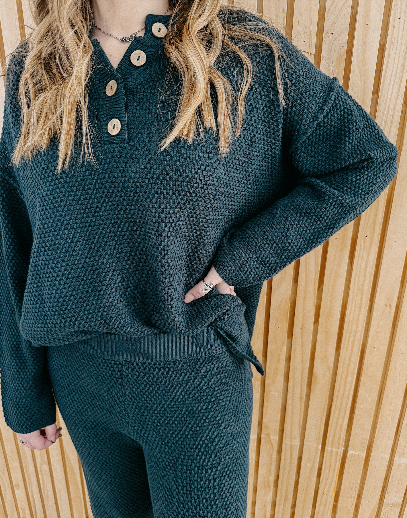 Introducing the Aspen Textured Long Sleeve - the perfect blend of comfort and style! With a button-up front, long drop-shoulder top, and hi-low hemline, this top will elevate any outfit. Plus, the side slits add a touch of uniqueness. Stay cozy and chic with Aspen. Pair with our Aspen pants for the perfect set!