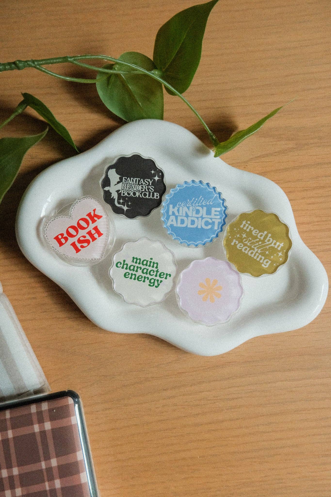 Add a touch of bookish charm to your reading experience with these adorable Kindle Grips! Whether you’re lost in a fantasy world or cozying up with a romance, this grip makes holding your device easier and more comfortable during those long reading marathons. Featuring cute designs inspired by your favorite bookish vibes, this Kindle grip ensures a secure hold while reading. No more hand cramps or awkward grips—just pure reading bliss! Perfect for any Kindle, Kobo or phone!