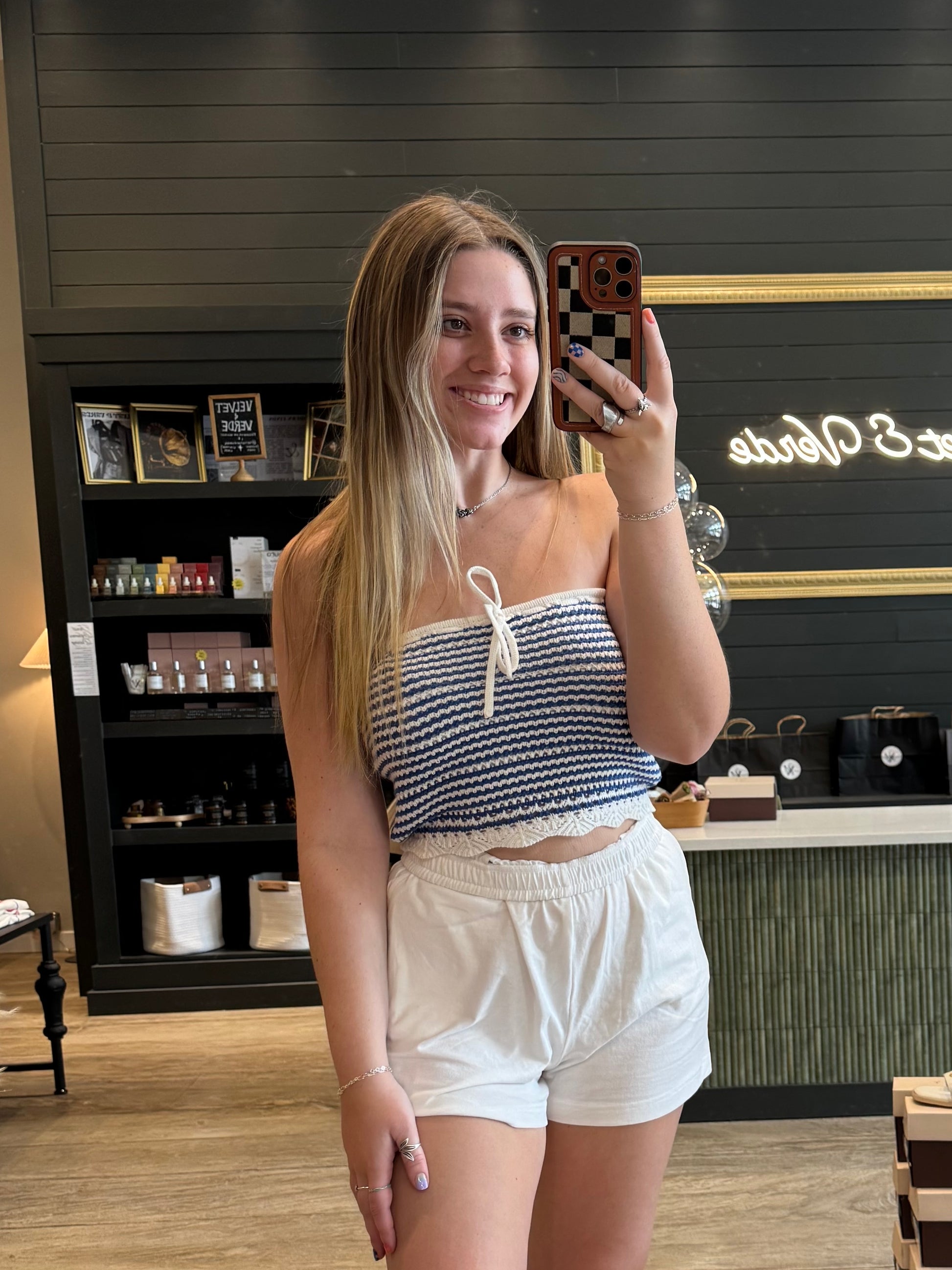 Irresistibly soft and totally adorable, the Jolie Tube Top rocks a fun crochet pattern from top to bottom with a flirty tie neckline that screams summer vibes! This sassy little number features a cropped cut and slim fit that shows off your style, while pure cotton keeps things breezy and comfortable.