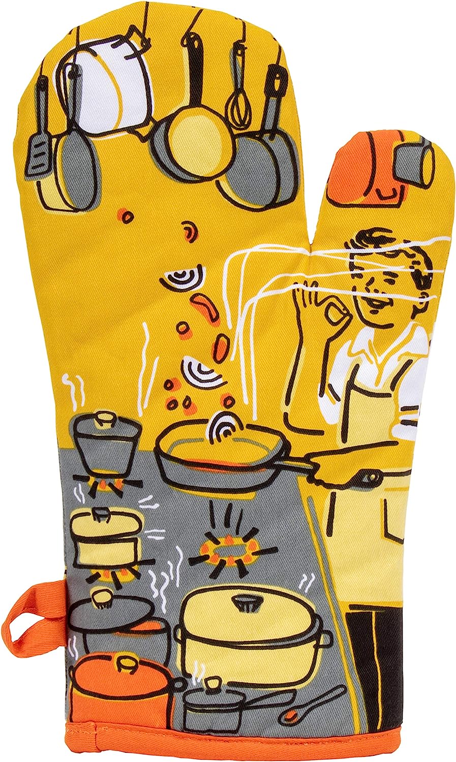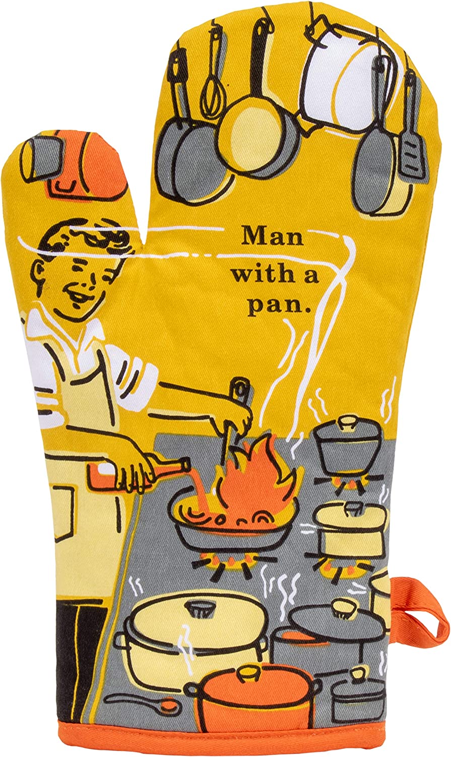 Keep your hand safe from the heat in style with this hilarious Man With A Pan oven mitt! Our vintage-inspired design is sure to have you laughing - and grabbing your hot dishes with ease. Don't get burned with anything less than the perfect mitt! 🤗