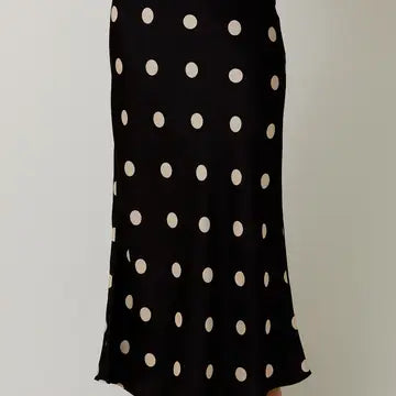 Step out in style with the Nina Polka Dot Maxi Skirt! This playful skirt features a classic polka dot pattern that adds a fun twist to your wardrobe. Its flowing maxi length offers comfort and movement, perfect for twirling through sunny days or dancing the night away. Pair it with your favorite top for an effortlessly chic look that’s full of personality.