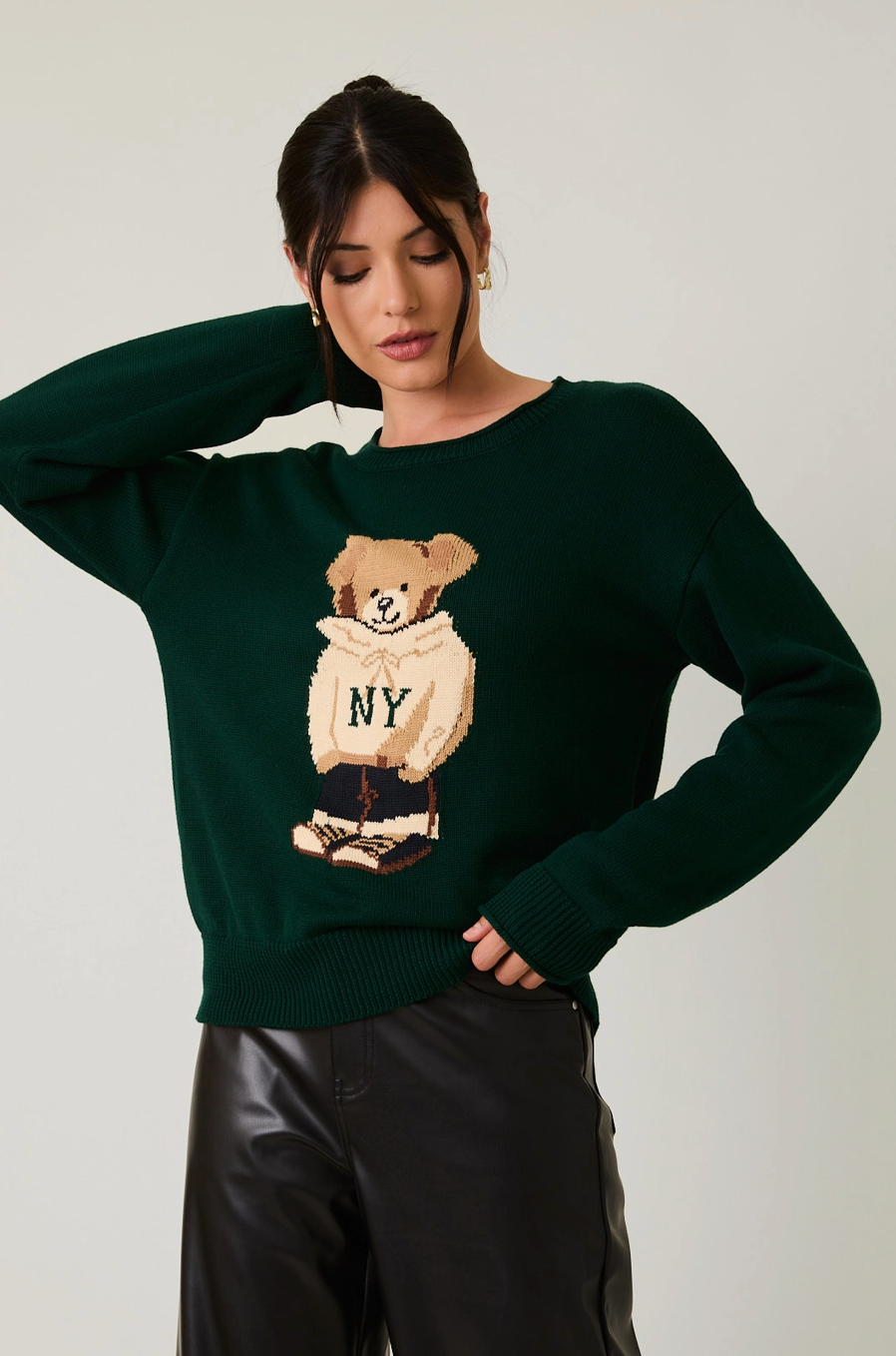 Stay cozy and adorable in the NY Teddy Sweater, featuring a charming bear design paired with bold "NY" lettering. Perfect for adding a playful touch to your everyday look while keeping you warm and comfy. Whether you’re lounging at home or out on a casual stroll, this sweater brings a fun, cuddly vibe to any outfit.