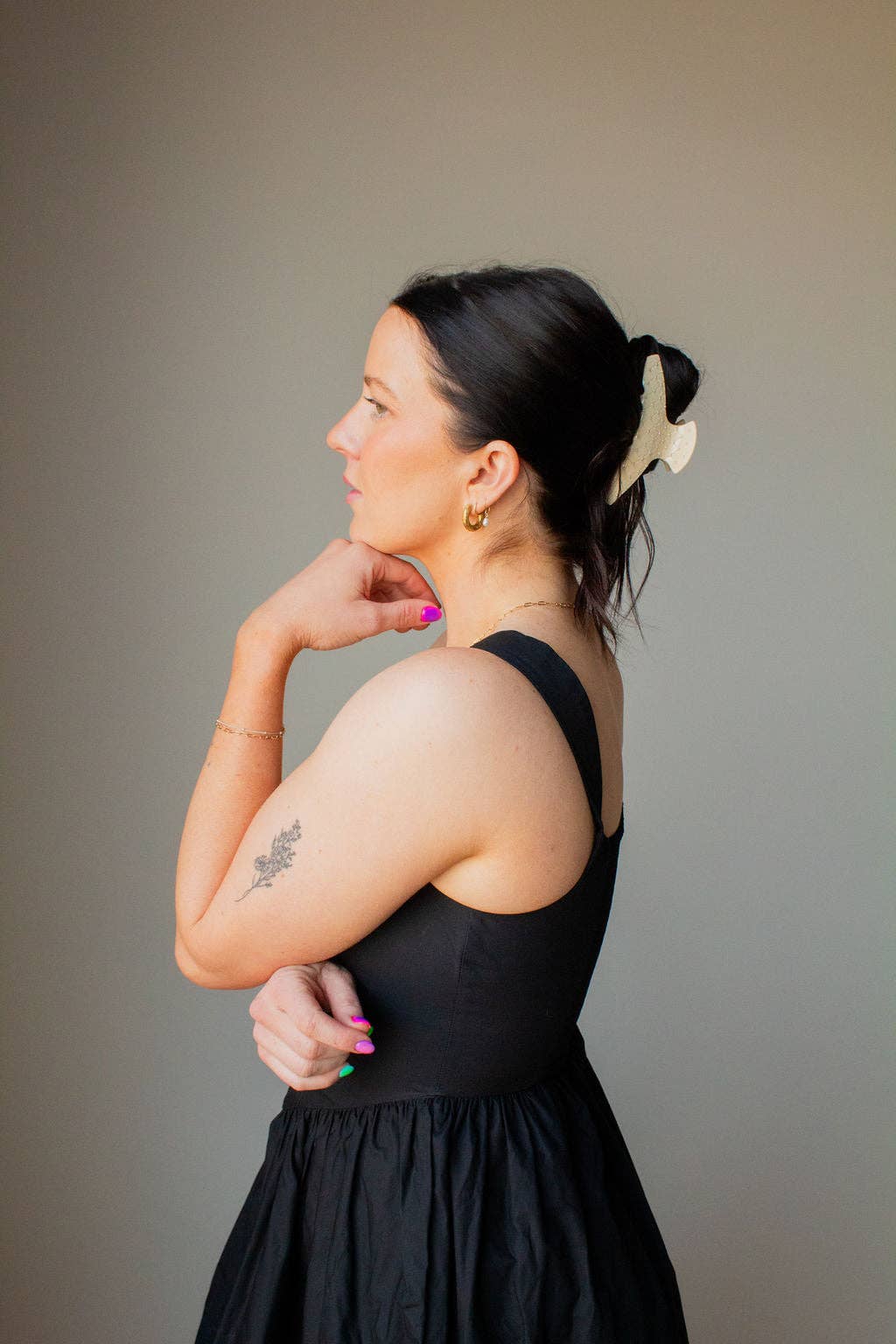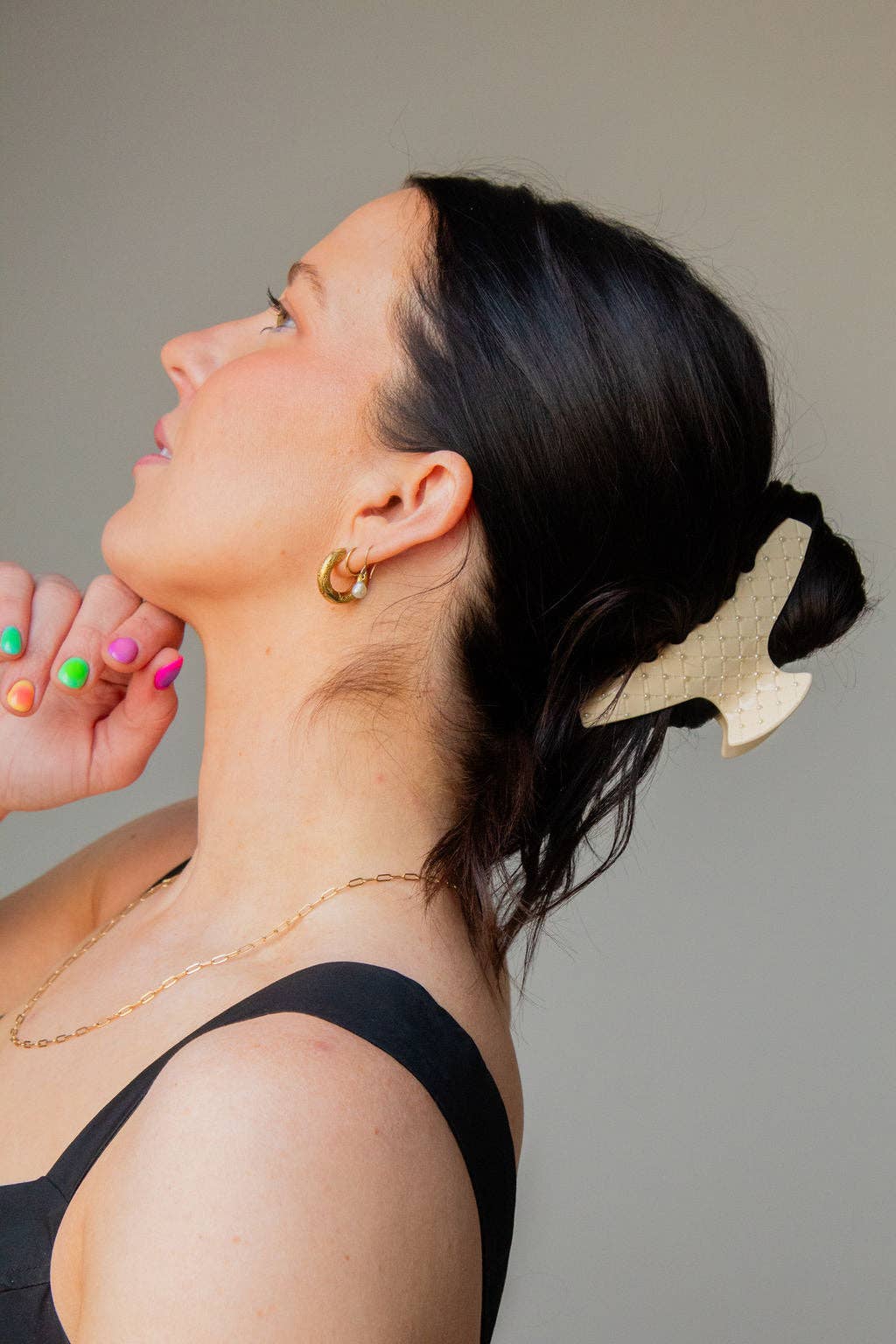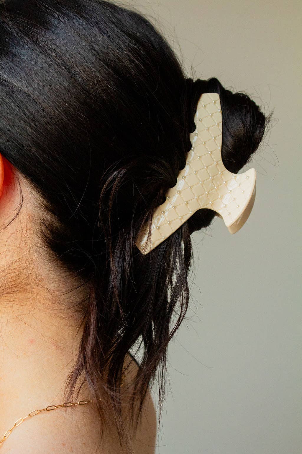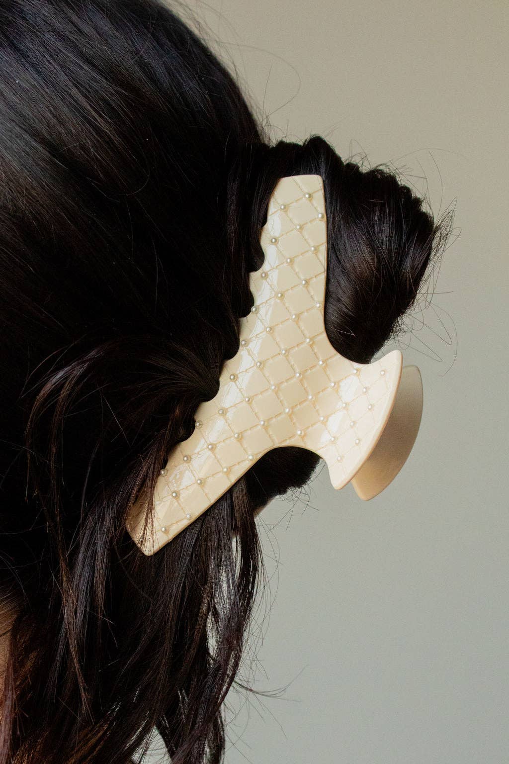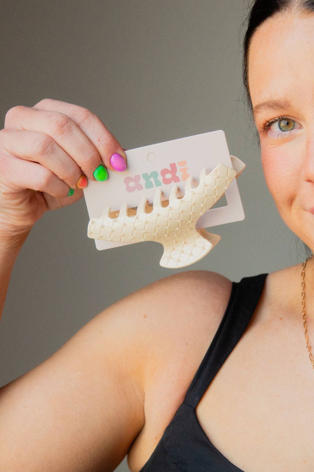 Our clips put a beautiful Andi touch on the hair clips you thought you knew. This claw clip comes in the most perfect champagne claw clip and has little pearls on it, making it so classy and perfect. Pair this with your favorite date night dress or work fit! It is a large 4 inch claw clip.
