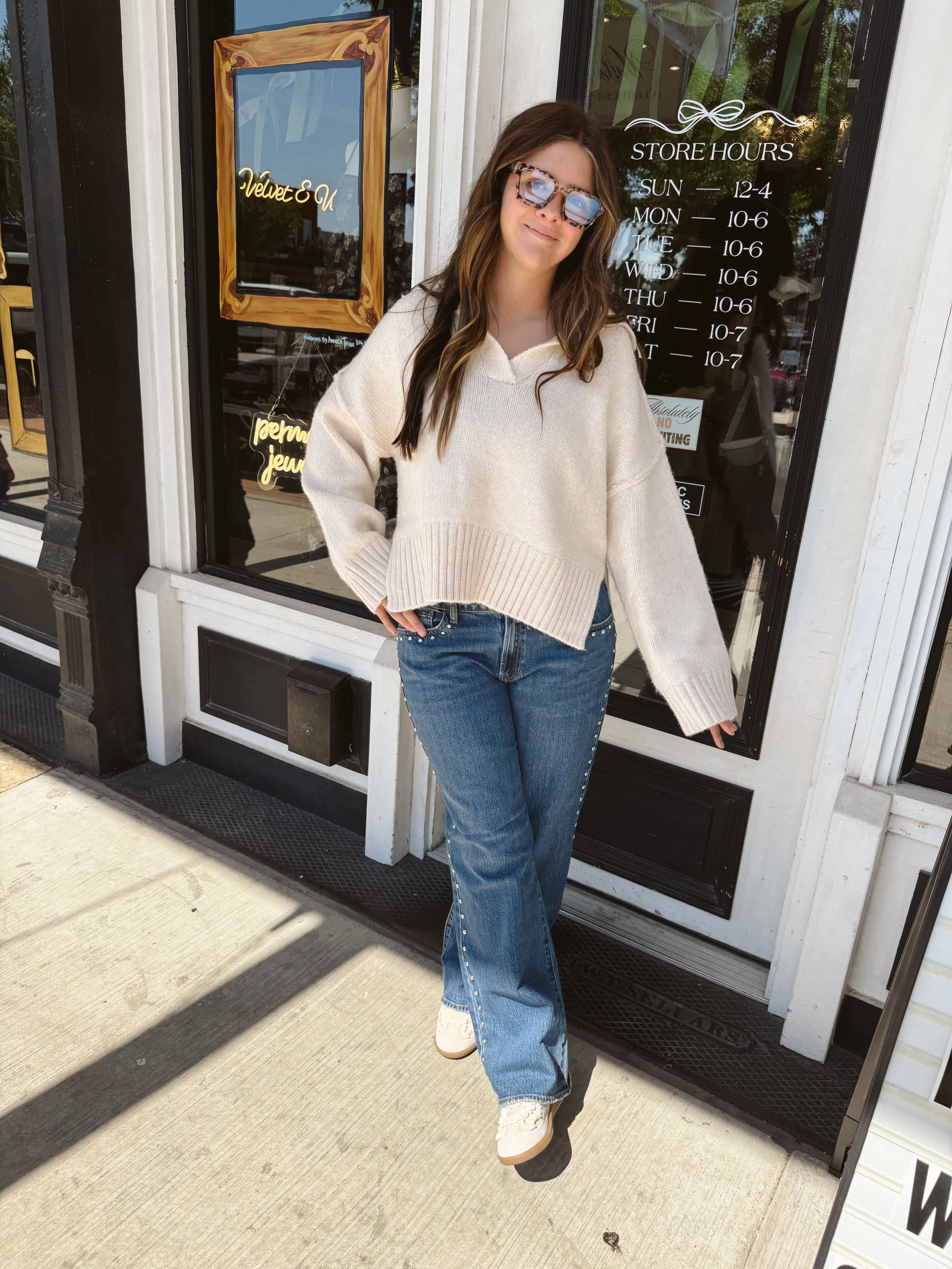 All other items (sale, accessories, jewelry, etc.) are final sale—no exceptions. We’re a small biz, and this helps us keep curating the cool-girl pieces you love.