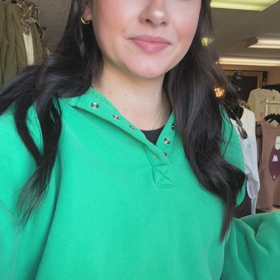 Wrap yourself up in the playful and practical Leah Pullover. This snap button collared sweatshirt adds a touch of fun to your wardrobe while keeping you cozy and stylish. Stay warm and stylish with the perfect blend of function and flair.