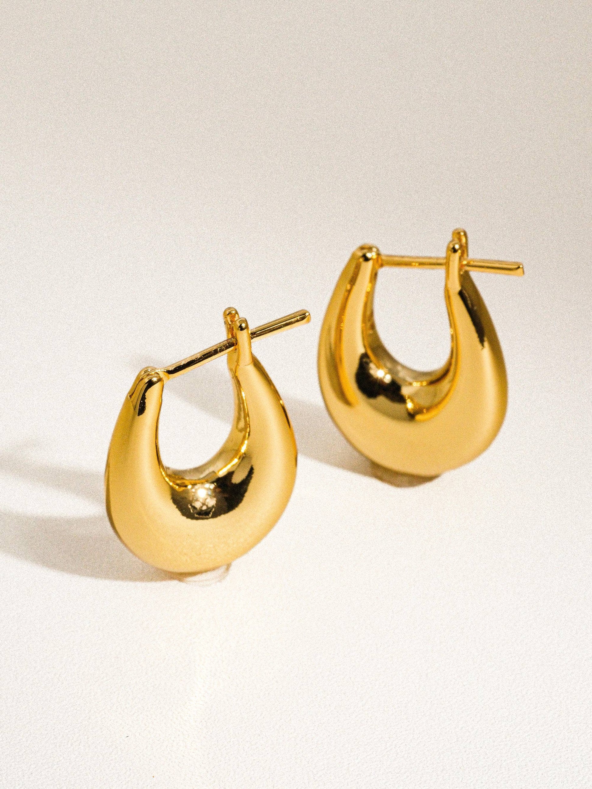 These elegant droplet hoops bring effortless sophistication to any look. Crafted from 18K gold-plated brass, they feature a timeless curved design that flatters all face shapes. The waterproof construction means you can wear them confidently through workouts, showers, and adventures without worry. Lightweight yet substantial, the Quinn droplets are your go-to pair for both everyday elegance and special occasions.