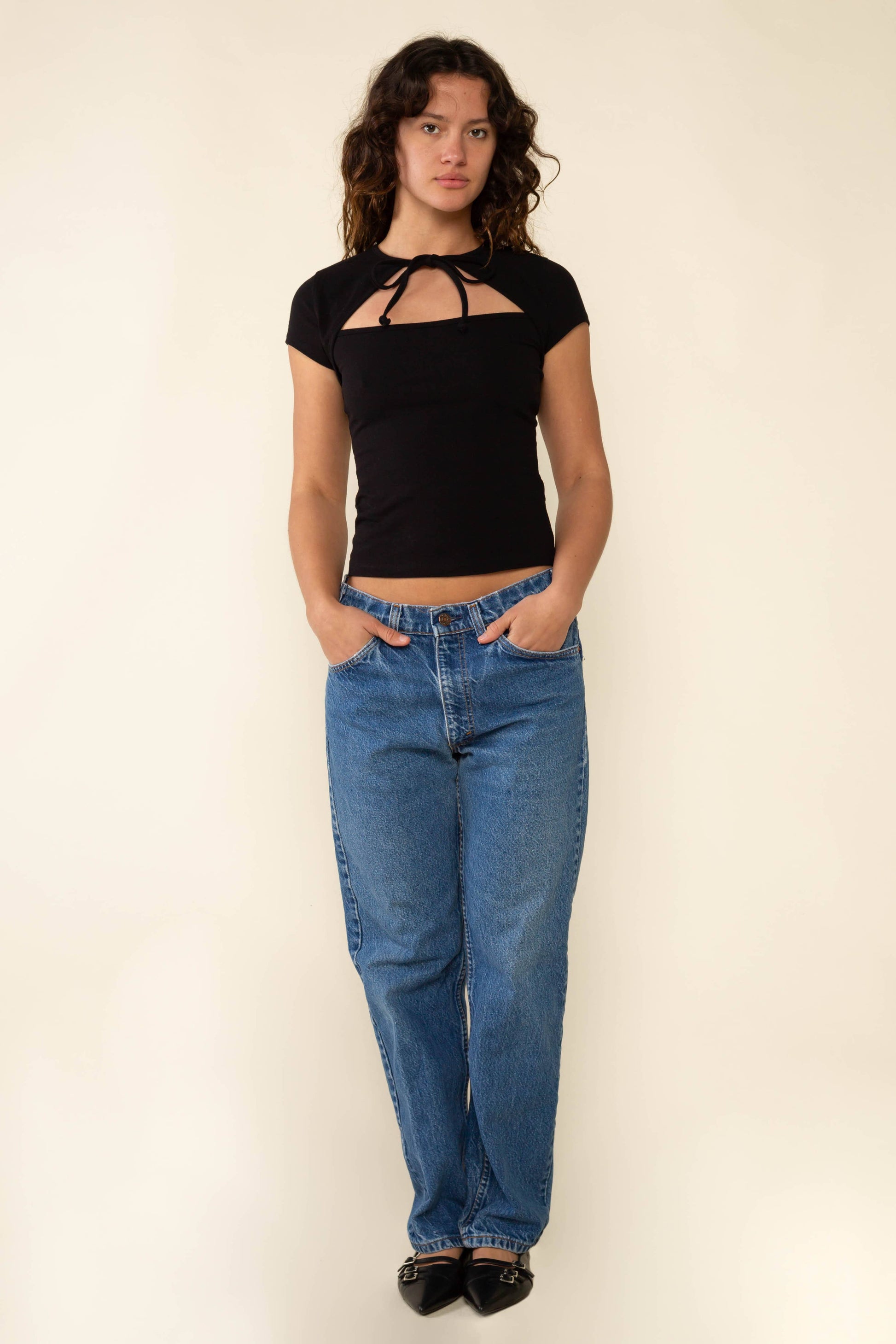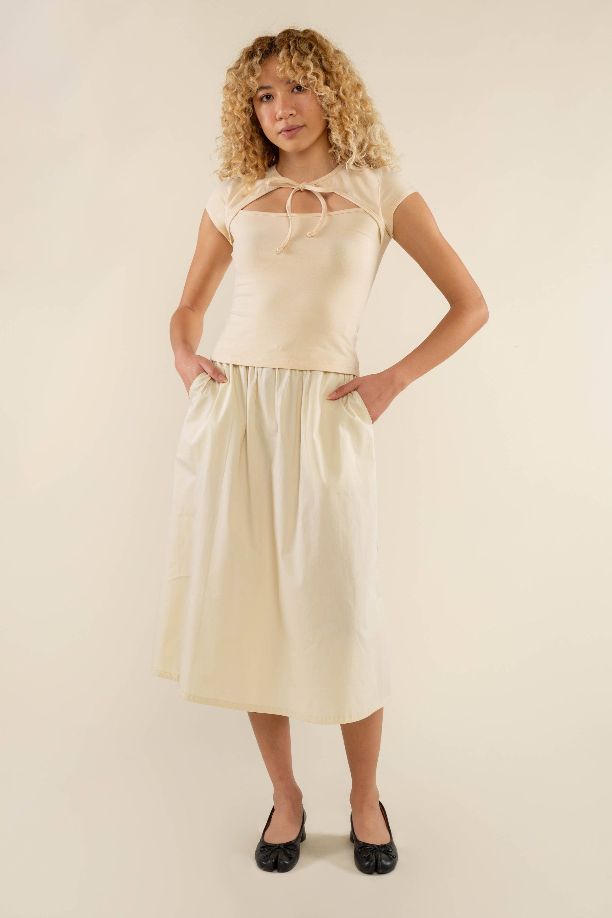 Get playful with the Risa Neck Tie Top! This cap sleeve tee is made from a comfortable cotton spandex jersey, perfect for everyday wear. The high neck tie detail adds a touch of quirkiness to this mid-length top. Dress it up or down for a fun, versatile look.