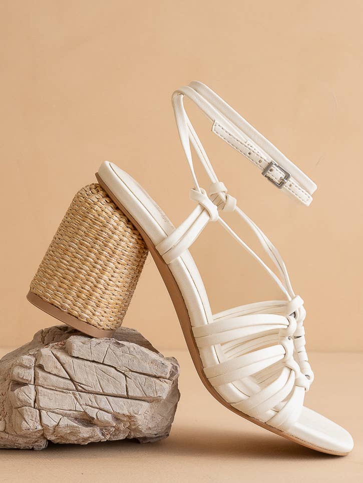 A strappy basket weave heel for all those hot summer nights. Perfect to wear from the farmers market to your next hot date. Materials: