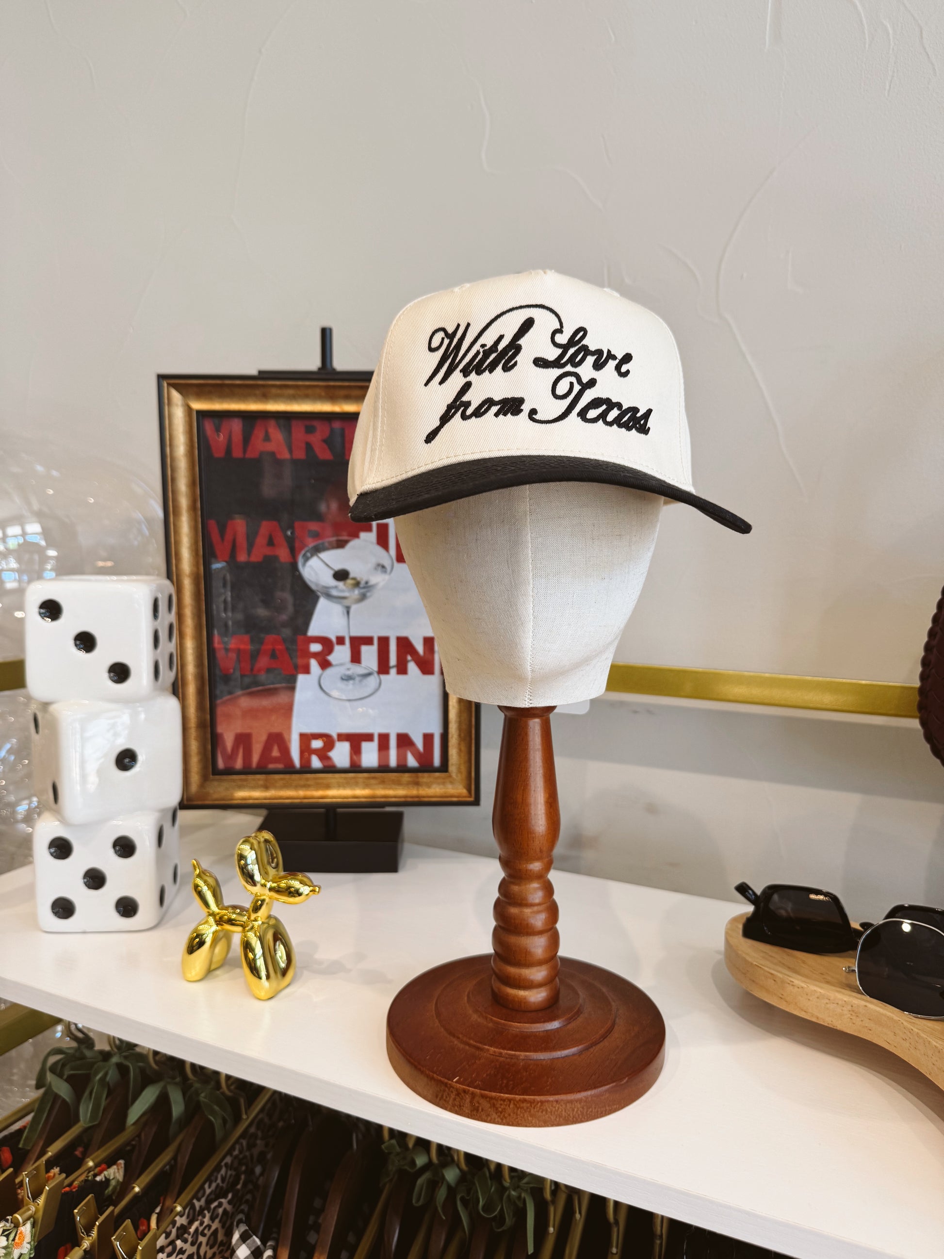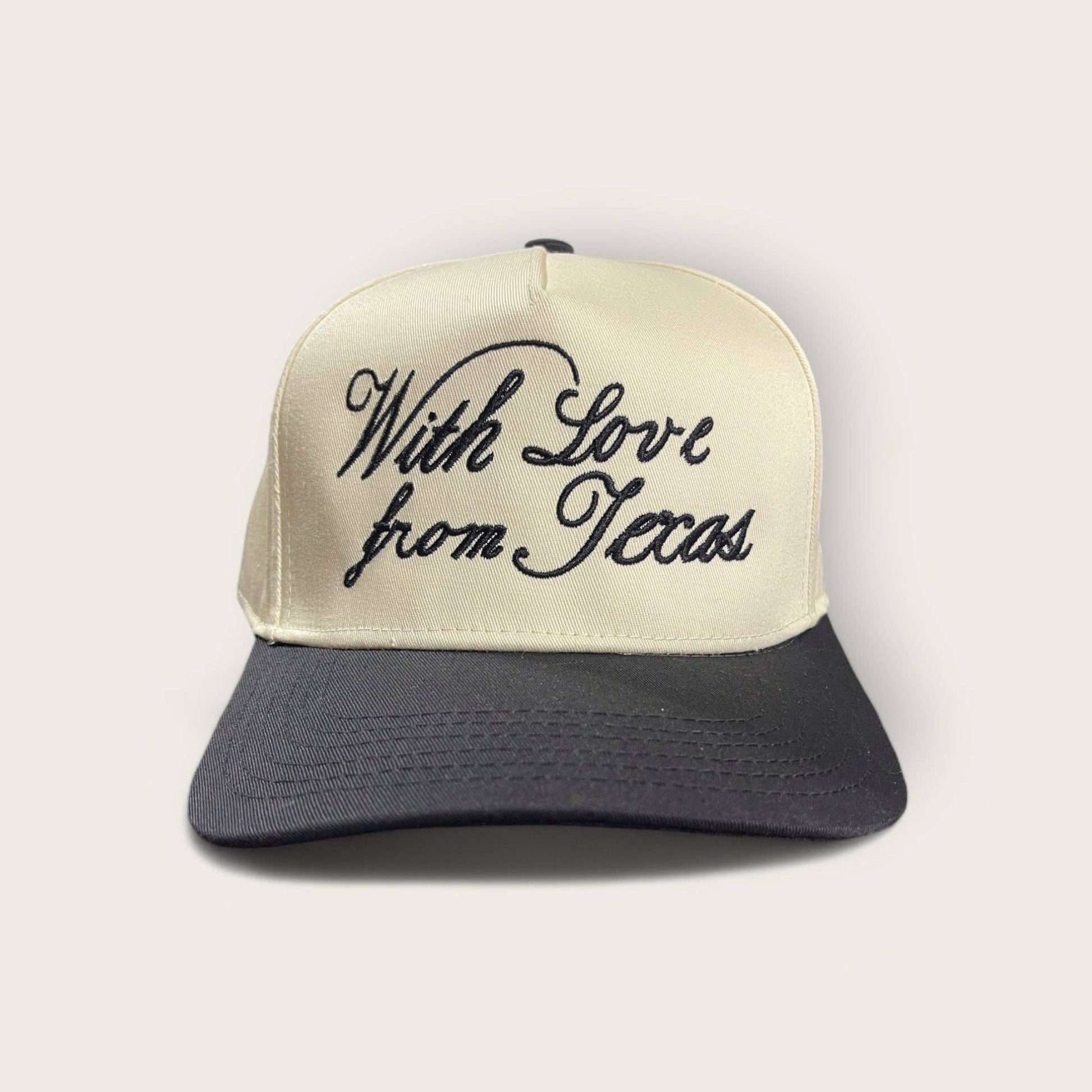 Spread the love with this black and tan embroidered classic trucker hat from Texas! This hat is perfect for adding a little extra charm to any outfit. Show off your Texas pride and playful style with our With Love from Texas Classic Trucker Hat!